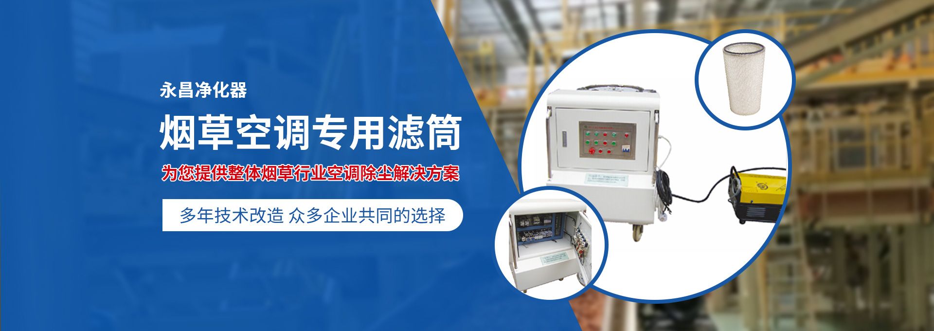 新鄉(xiāng)市永昌凈化器有限公司是生產(chǎn)煙草行業(yè)空調(diào)除塵專用濾筒的企業(yè)。注冊資金1000萬元。已通過ISO9001國際質(zhì)量管理體系認(rèn)證。對產(chǎn)品有嚴(yán)格的管理制度和售后服務(wù)。我公司以誠信、負(fù)責(zé)、守信譽(yù)、重質(zhì)量的精神所生產(chǎn)的產(chǎn)品,近幾年來在煙草行業(yè)受到廣泛應(yīng)用,并受到用戶的一致好評。 從一九九四年以來為煙廠的空調(diào)設(shè)備服務(wù)。十幾年來,我們不斷走出去請進(jìn)來學(xué)習(xí)新技術(shù)。定期到用戶那里咨詢情況:互相交流,認(rèn)真聽取寶貴意見,不斷提高產(chǎn)品質(zhì)量。從經(jīng)濟(jì)和安全,方便的角度出發(fā),根據(jù)煙廠濕度大的生產(chǎn)環(huán)境和濾筒收集到的含酸堿、氧化劑的粉塵。在空調(diào)箱工作狀態(tài)下我們頂著巨大的風(fēng)壓危險(xiǎn)在箱內(nèi)停留了幾分鐘,認(rèn)真查看濾筒工作情況,發(fā)現(xiàn)濾筒有并死狀態(tài),造成濾筒不過濾、不過風(fēng)、壓差高的現(xiàn)象。經(jīng)幾十次試驗(yàn)分析,在標(biāo)本兼治的原則下,有針對性的解決了這一問題。 我公司針對煙廠制絲、卷接包、混絲間、儲(chǔ)絲房、冷卻床、梗膨化等不同的生產(chǎn)環(huán)境,